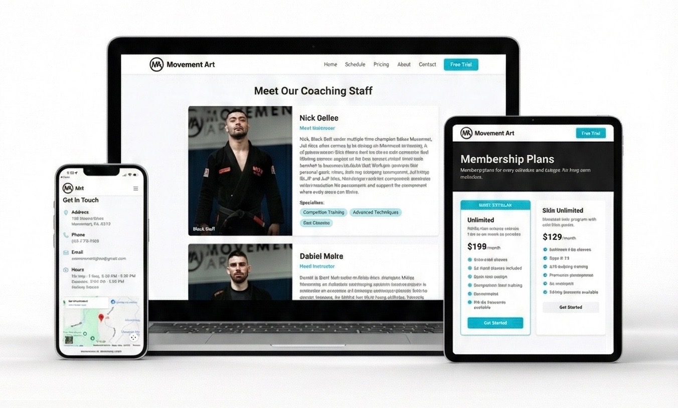 - 5 pages: Home, About, Services/Classes, Pricing, Contact